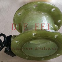 玻璃钢蝶阀把主要易腐蚀部件如阀体、阀板等设计为玻璃钢材料,玻璃钢部件所使用的纤维、纤维织物与树脂类型由蝶阀的工作条件确定。玻璃钢阀体的主体形状为直管状,它的结构特点是以一段玻璃钢直管为基础,然后再增加法兰、密封环制造而成。该种蝶阀具有耐腐蚀能力强、成本低廉、制造工艺简单灵活等特点。质轻而硬、不导电、机械强度高、耐腐蚀、安装方便、耐温高。可添加防静电材料,达到防静电作用。玻璃钢蝶阀可用于输送腐蚀性气体的管道中,具有不腐蚀,寿命长的特点,可做成各种颜色。